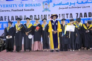 University of Bosaso – Garowe: Munaasibad si heer sare ah loo soo Agaasimay oo ay ku qalin jabinayeen Ducaddii 7-aad ee Ardayda Jaamacadda Boosaaso Garowe ayaa ka dhacday gudaha Jamaacdda, taas oo shahaadooyin iyo abaalmarrino lagu guddoonsiiyay Ardaydii kaalmaha Sare ka galay sanad Jaamacadda.